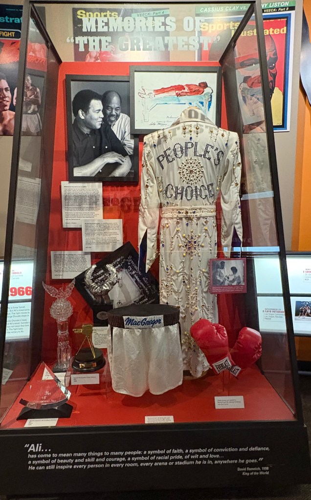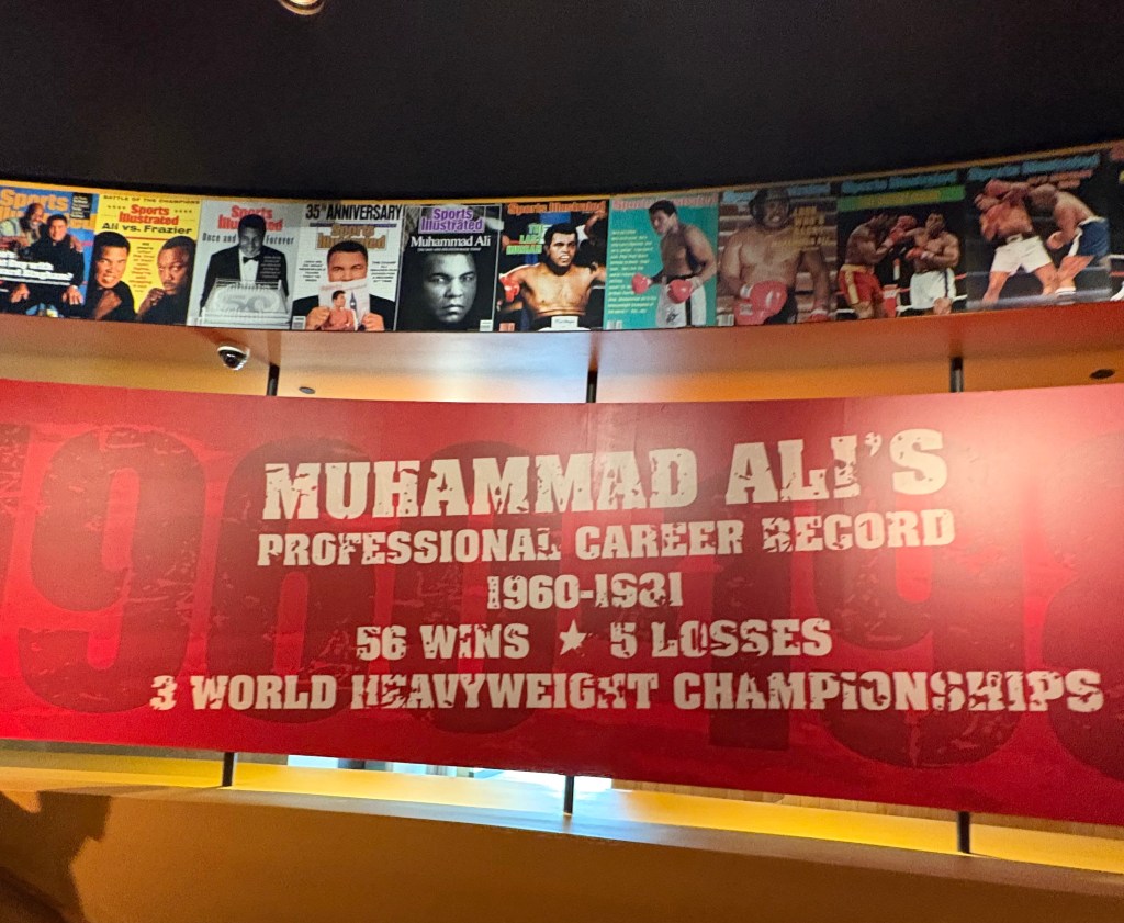 We were off to the Muhammad Ali centre and museum which is dedicated to his life and legacy and features interactive exhibits, artefacts and videos on his boxing career, humanitarian work and his core values of confidence, conviction, dedication, giving, respect and spirituality. There was even a full size boxing ring you could walk into and also a speedball plus heavy punching bag to try out (if you felt up to it). Walking through the museum, it was obvious he was so much more than a boxer and just like Elvis, he used his fame and success to champion numerous causes particularly for those who were disadvantaged.